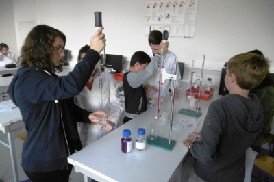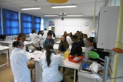 Le lundi 10 octobre tous les 3es se sont rendus à Quimper pour la journée Le matin, ils ont été accueillis au lycée Chaptal à l’occasion de la fête de la science. Ils ont participé à différents ateliers encadrés par des lycéens, ils ont ainsi pu faire des analyses alimentaires, médicales ou chimiques