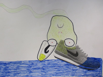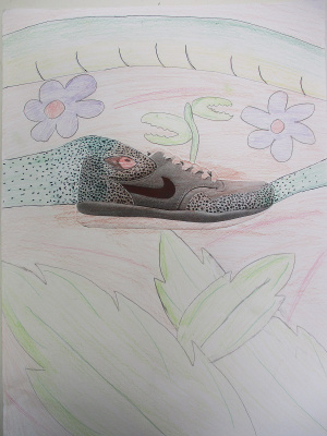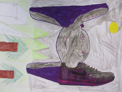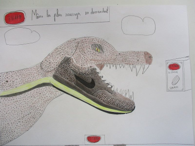 Les élèves de quatrième se sont appuyés sur les caractéristiques plastiques d’une image de chaussure de sport pour la transformer, la camoufler, en toute autre chose. A cette occasion, ils ont découvert les artistes