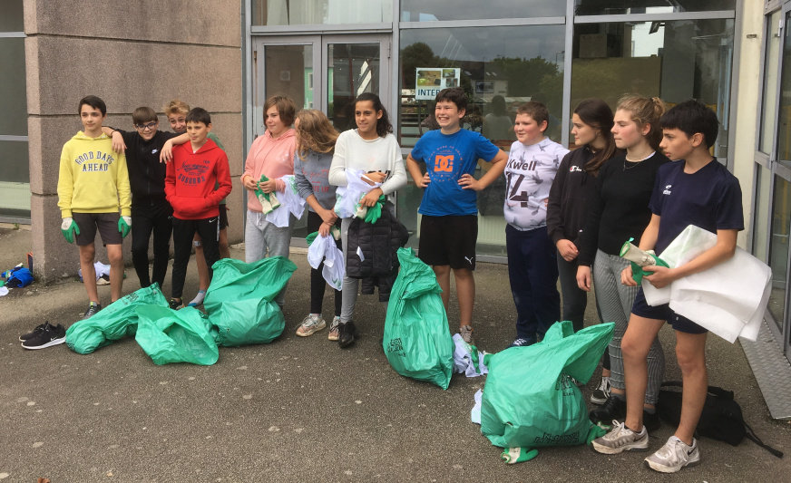 Mercredi 2 octobre 2019, les élèves internes du collège accompagnés de Quentin et Sandra, les assistants d’éducation, sont allés dans le bois de Kerlagadic et dans les abords de la salle Jean Moulin de Bannalec pour ramasser les déchets.