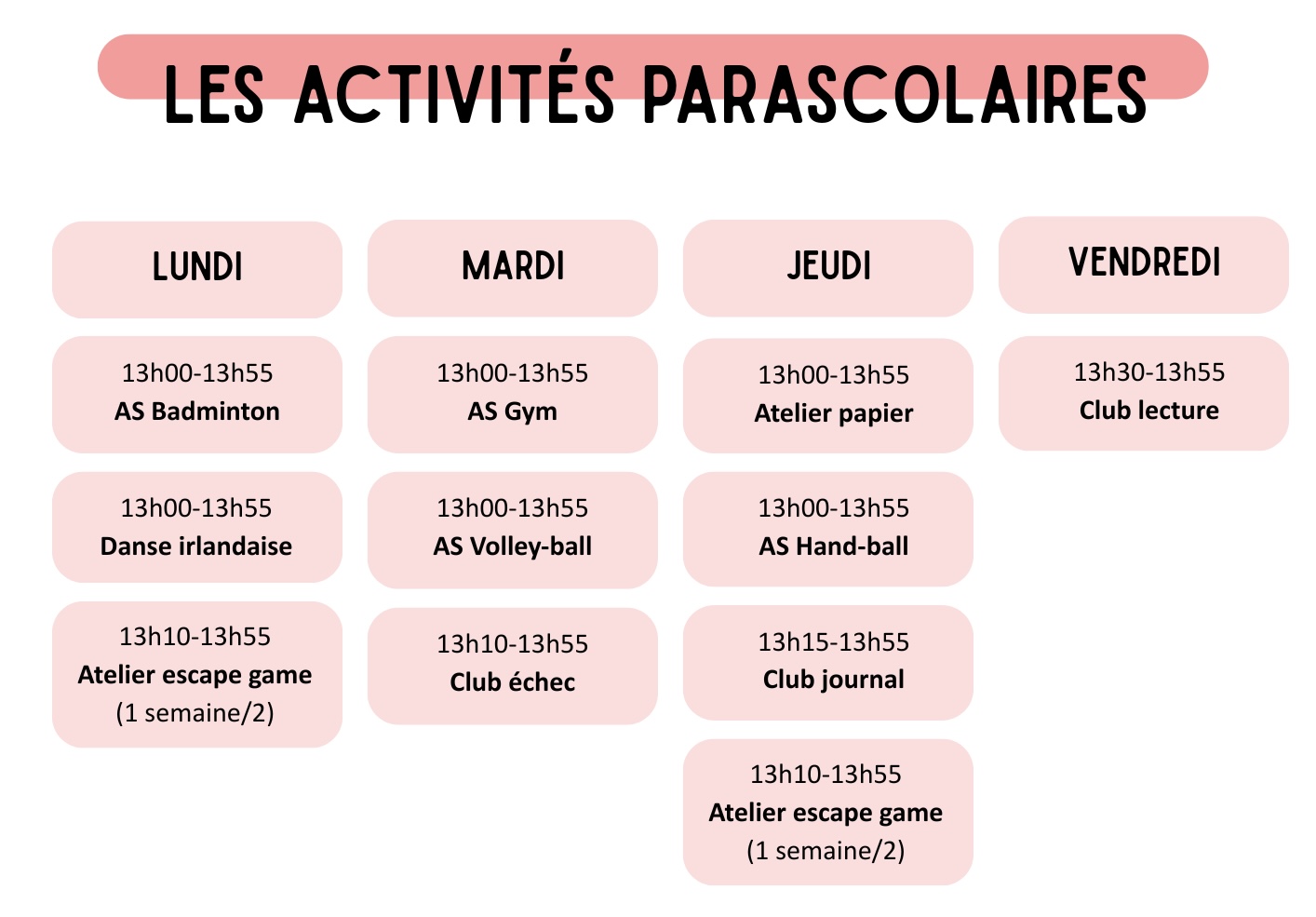 Les activités parascolaires sur la pause méridienne (2025-2026) |